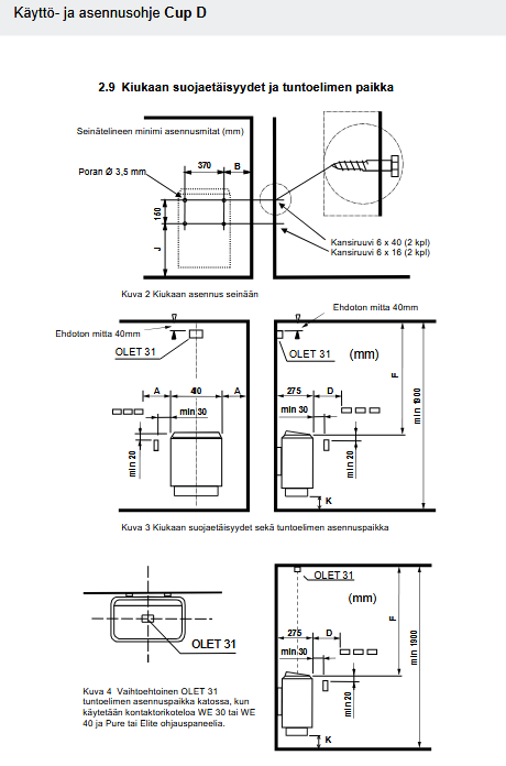 Cup D -malli: vaatii erikseen hankittavan WE-releboksin + Pure- tai Elite Free -ohjauspaneelin