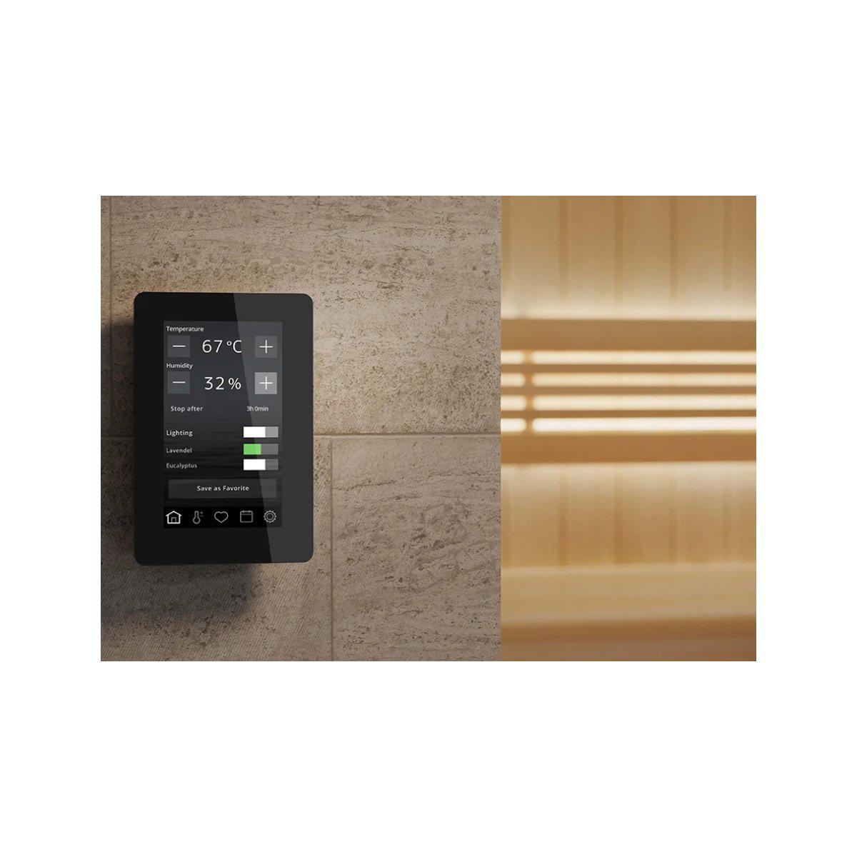 4,5 tuuman kosketusnäyttö näyttää reaaliaikaisesti saunan ja höyrysaunan tilan kaikilta osin. Mukana on myös energiansäästötoiminnot.