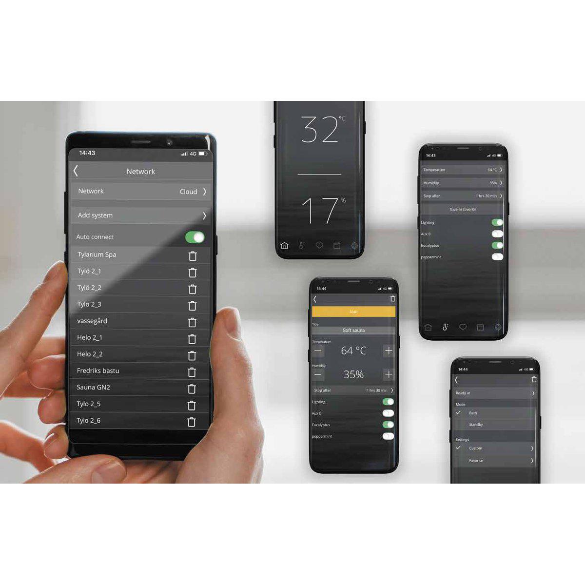 Saunan ja höyrytoiminnot ohjattavissa paikallisen WiFi-verkon kautta mobiililaitteella