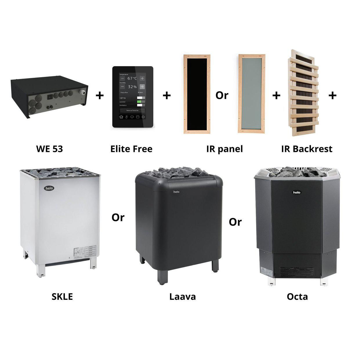 Miksi tyytyä kompromisseihin saunanautinnoissa? Nauti infrapunalämmöstä perinteisessä Helo-saunassa! Infrapuna tukee hyvinvointiasi, täydentää perinteistä saunaa ja antaa sinulle valinnanvapauden. Nyt voit ohjata sekä infrapaneeleja että kiuasta Elite Free -ohjauspaneelin kautta.